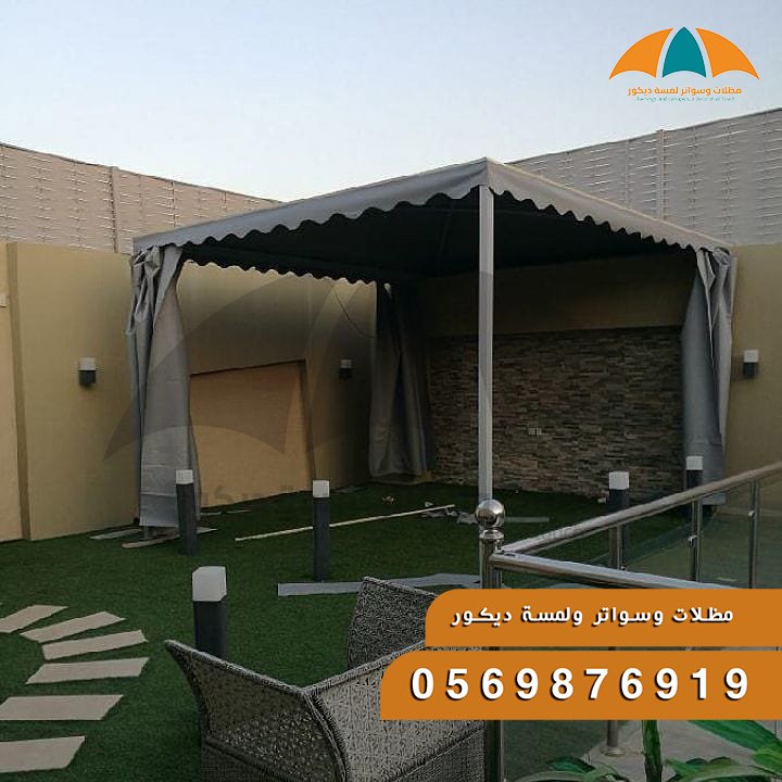 تُستخدم الأقمشة ذات الجودة العالية لتغطية الهياكل المعدنية، مما يمنحها مرونة في التصميم وسهولة في التركيب والإزالة.