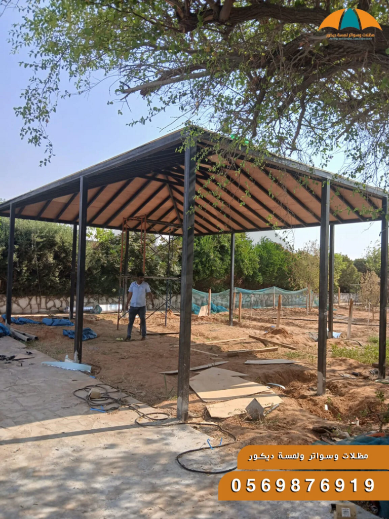 🔹 تنفيذ الهيكل (حديد – خشب – ألمنيوم)